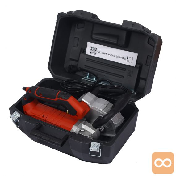 Rezalnik sten funkcijo mehkega zagona ima izhodno moč 1350 vatov in ima zaščito pred preobremenitvijo. Širina reza je nastavljiva na pet različnih položajev in je med 8 mm in 26 mm. Ustvarite lahko brezstopenjsko nastavljivo globino reza do 30 mm. Poleg tega ima stenski rezalnik že sestavljen vakuumski adapter, na katerega lahko priključite sesalnik (ni v obsegu dobave). Na ta način se morebitni prah, ki nastane, neposredno posesa in delovno območje ostane čisto. Da lahko rezkalnik priključite na različne tipe sesalnikov, je v obsegu dobave tudi ustrezen reduktor.