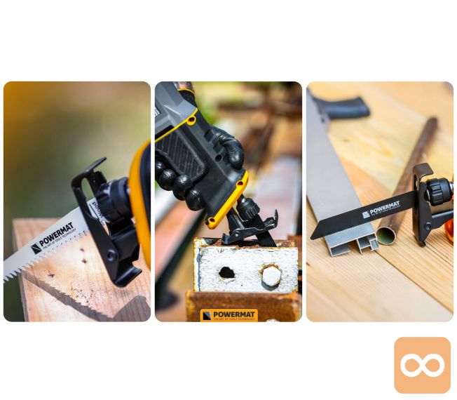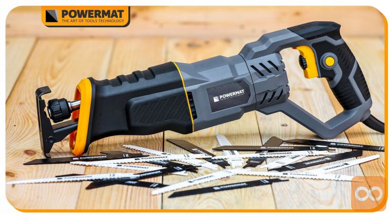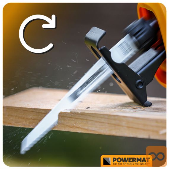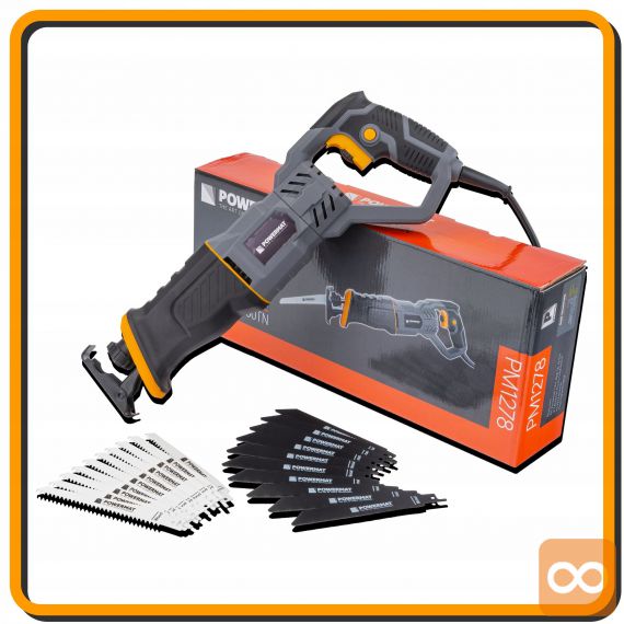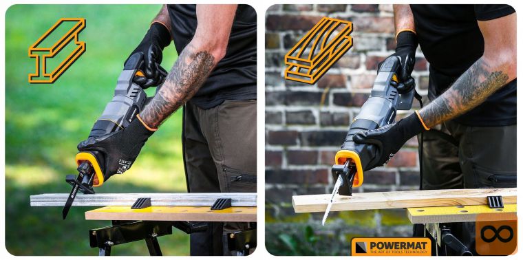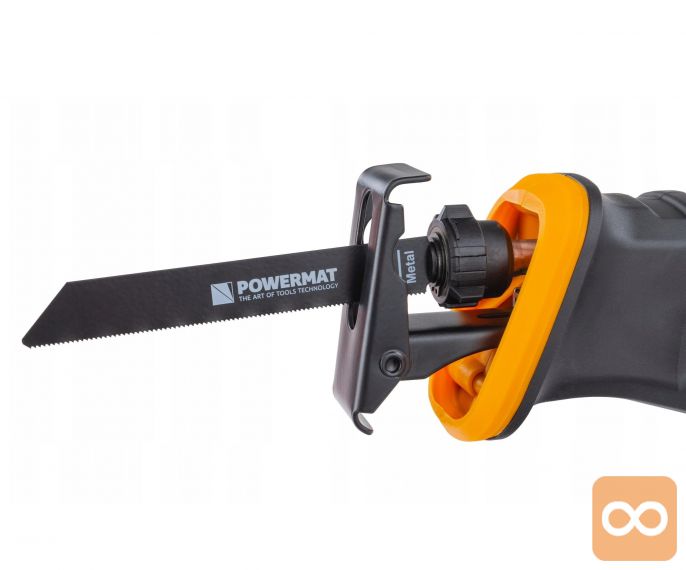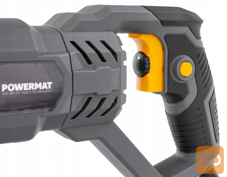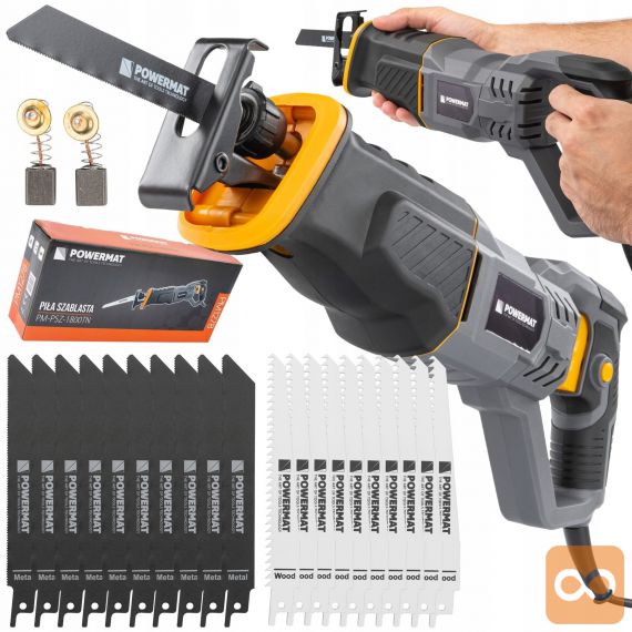 Udobna in lahka sabljasta žaga POWERMAT PM-PSZ-1800T za rezanje lesa, jekla, aluminija in plastike.