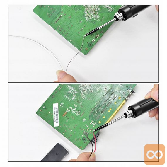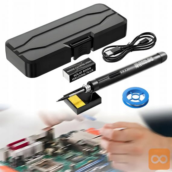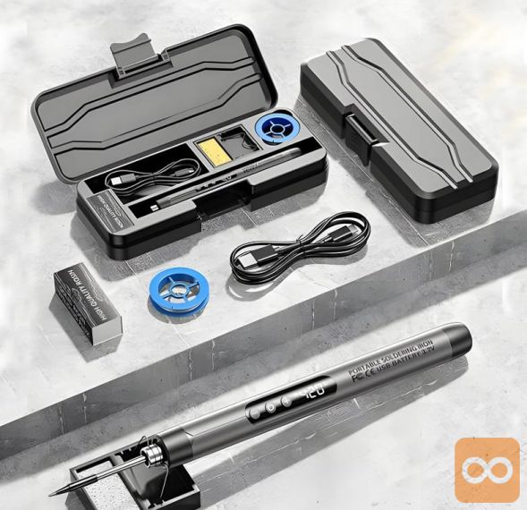 Ne glede na to, ali ste profesionalni elektronik ali hobist, vam bo ta model omogočil učinkovito delo brez omejitev. Zahvaljujoč vgrajeni bateriji vam ne bo treba iskati vtičnice – spajkate lahko kjer koli jo potrebujete. To orodje združuje natančnost, funkcionalnost in kompaktno zasnovo.