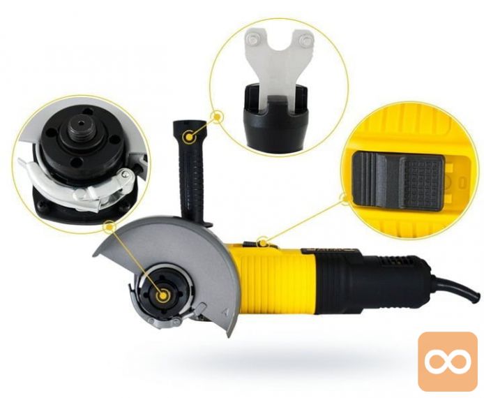 Kotni brusilnik Stanley FatMax FMEG220 je primeren za zmogljivo struženje, natančno rezanje in temeljito odstranjevanje rje. Omogoča neutrudljivo delo zaradi ergonomske in kompaktne oblike ter gumiranega dodatnega ročaja s 3 položaji. Za optimiziran nadzor med uporabo in varnost skrbijo mehki zagon ter stikalo za prekinitev napetosti, ki preprečuje nenameren zagon naprave po izpadu napajanja. Plosko aluminijasto ohišje omogoča delo tudi na težko dostopnih mestih.