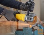 Nadalje je kotni brusilnik opremljen z navojem vretena M14, zaščitnim pokrovom s hitro nastavitvijo brez orodja, blokado vretena, velikim stikalom za izklop z zaklepanjem in zaščito pred prahom ter dvoročnim ročajem s prostorom za shranjevanje čelnega ključa.