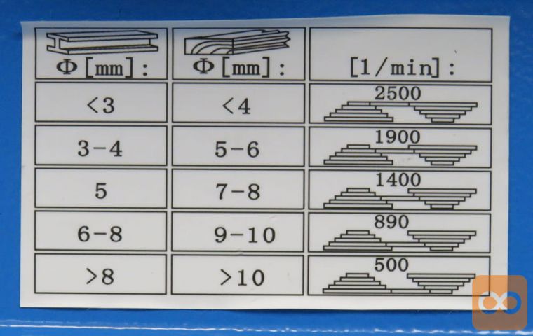 - Hitrost vretena: 500 – 2500 vrt / min (5 prestav)