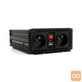 Pretvornik toka 12VDC v 230VAC omogoča priključitev električne opreme na električno omrežje iz avtomobilske baterije. Posebej zasnovan sistem vam omogoča ustvarjanje toka z neprekinjeno močjo 700 W in trenutno (impulzno) močjo do 1400 W. Oprema je opremljena s funkcijo izklopa s previsoko ali nizko vhodno napetostjo, zaščito pred pregrevanjem, preobremenitvijo in varovalko za kratek stik.