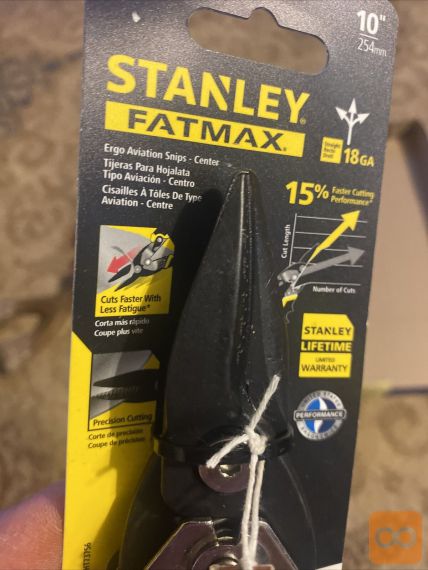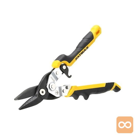 Ergonomske škarje STANLEY® FATMAX® – ravni rez 250 mm z nazobčanimi rezili za rezanje do hladno valjanega nerjavečega jekla kalibra 18 ali kalibra 23. Kovana rezila iz kromiranega molibdenovega jekla zagotavljajo moč in vzdržljivost. Oznake globine reza na čeljusti pomagajo pri natančnem rezanju. Splakovalna strojna oprema in vzmetni zapah izboljšata enostavnost uporabe in hitrejše odpiranje, samodejno sprostitev zapaha omogoča upravljanje z eno roko.