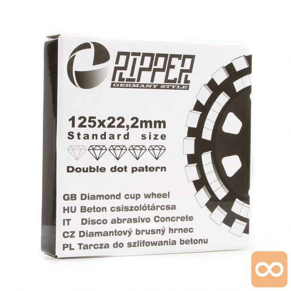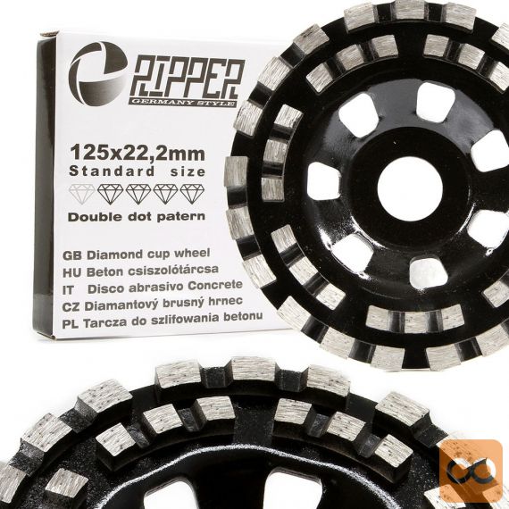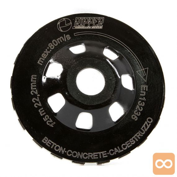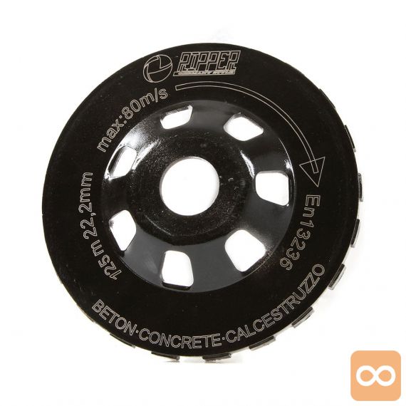• Diamantna skodelica premera 125 mm je namenjena za brušenje betonskih površin s kotnim brusilnikom.