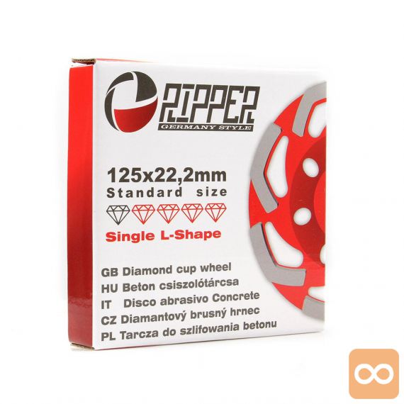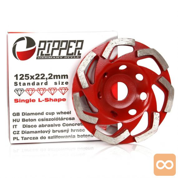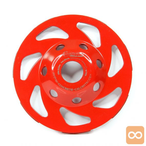• Diamantna skodelica premera 125 mm je namenjena za brušenje betonskih površin s kotnim brusilnikom.