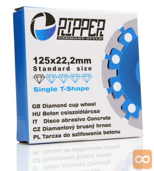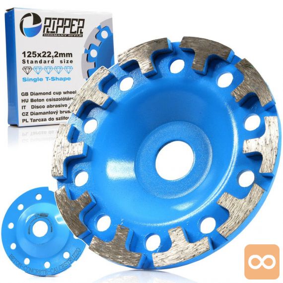 • Diamantna skodelica premera 125 mm je namenjena za brušenje betonskih površin s kotnim brusilnikom.