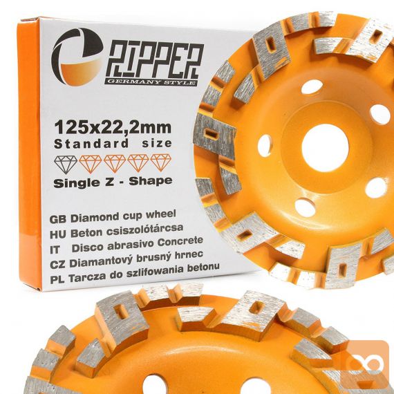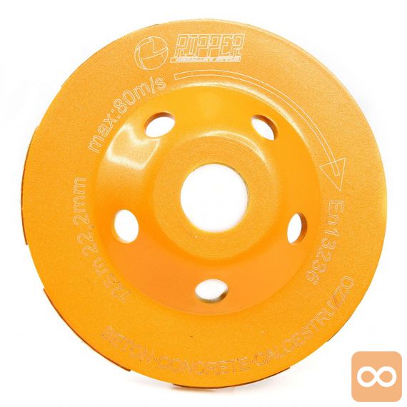 • Diamantna skodelica premera 125 mm je namenjena za brušenje betonskih površin s kotnim brusilnikom.