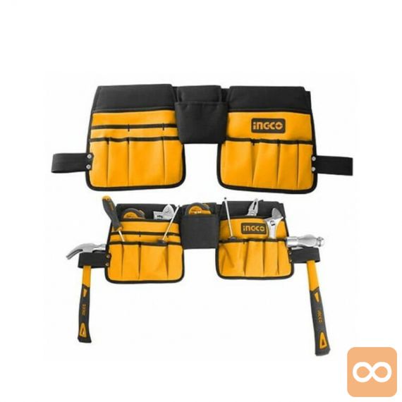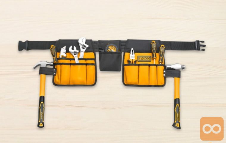 Pas za orodje INGCO ponuja 14 žepov za orodje in 2 držala za kladiva. Je izjemno trpežna in odporna na poškodbe. Lahko prenaša obremenitve do 10 kg.