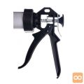 Izdelana je iz visokokakovostnega aluminija, kar zagotavlja trpežnost in dolgo življenjsko dobo. Ergonomsko oblikovan ročaj omogoča udobno in stabilno držanje, kar zmanjšuje utrujenost med dolgotrajno uporabo. Poleg tega je pištola opremljena z 1000 ml rezervoarjem, kar omogoča dolgotrajno delo brez prekinitev.