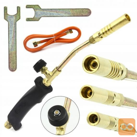 Profesionalni plinski gorilnik za ogrevanje in kurjenje v kompletu s 3 šobami.