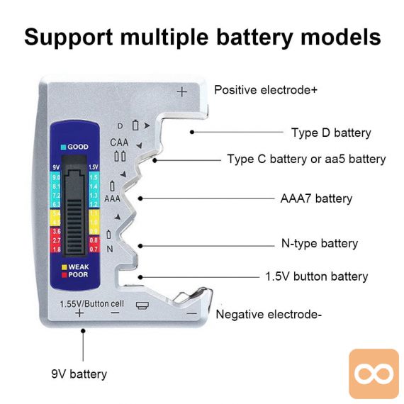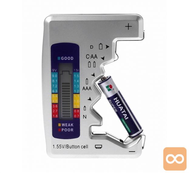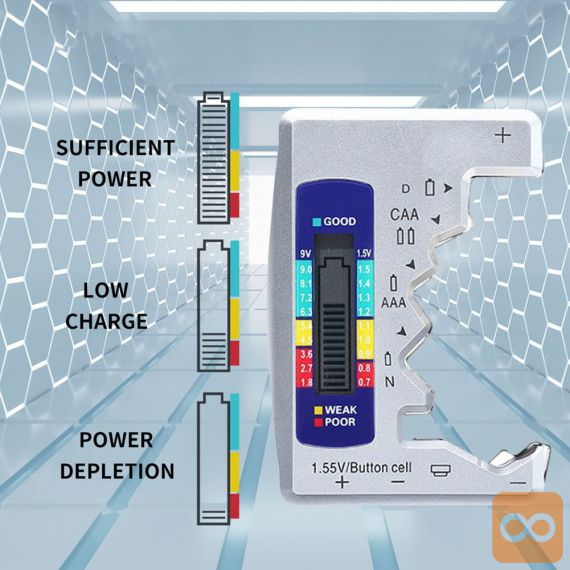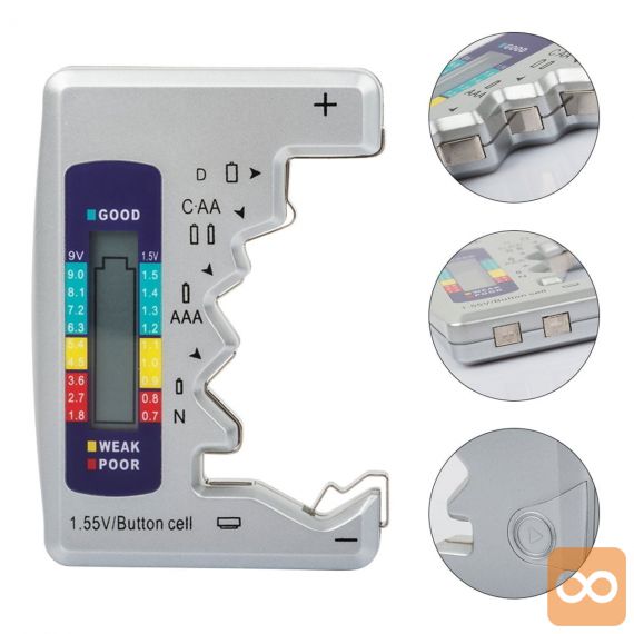 - Priročen, elektronski tester baterij in baterij za ponovno polnjenje – uporaben v vsakem domu in delavnici.