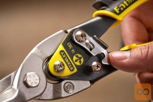Poseben zapah vam omogoča delo s pločevino z eno roko. Varnost zagotavlja tudi zapah – po končanem delu škarje le zaprite, zaradi česar ni strahu pred nenamerno poškodbo z rezilom.
