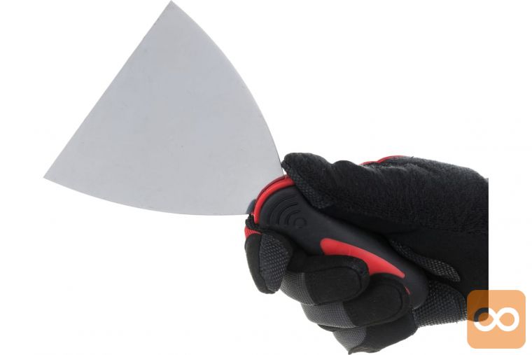 Na področju oprijema je odebeljen dvokomponentni (plastični + gumijasti) ročaj, namenjen enostavnemu nanašanju, izravnavanju in glajenju kita.