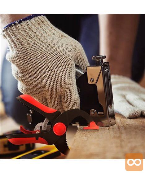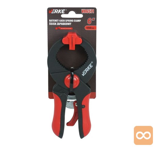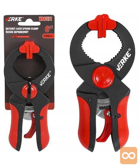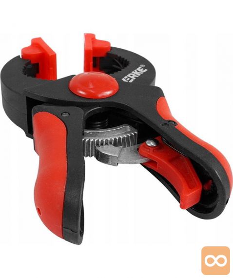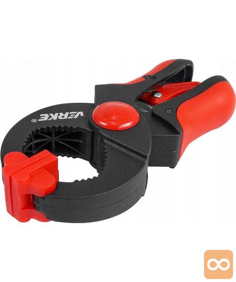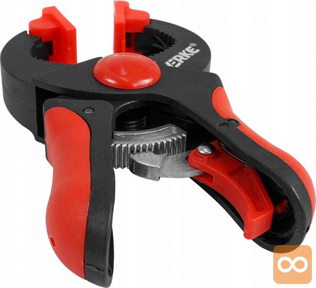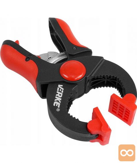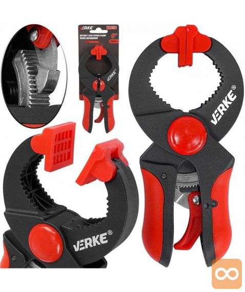 Vzmetna objemka z zaskočno ključavnico. Omogoča hitro, točkovno fiksiranje pri lepljenju in držanju različnih elementov, npr. pri mizarskih in modelarskih delih.