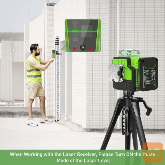 • Pri uporabi z laserskim sprejemnikom Huepar LR-8RG mora biti vklopljen pulzni način laserskega nivelirja.