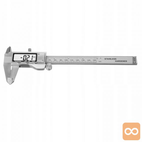 SPECIFIKACIJA – merska enota: inch / mm ; zaklepanje: da; natančnost: ± 0,02 ; dolžina meritve: 15 cm; višina števke: višina 1,7 cm; mera zunanjih mer: 15cm; mera notranjih mer: 15 cm; merjenje globine: da, imajo merjenje globine od 15 cm; mere: 23,5 x 8 x 1,5 cm; teža: 0,324 kg; teža v paketu: 0,343 kg.