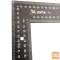Jekleni kotnik namenjen postavljanju pravih kotov in vzporednic. Kotnik je izdelan iz visokokakovostnega kaljenega jekla , zaradi česar je odporen na poškodbe. Opremljen z ravnilom v dveh lestvicah vam omogoča natančne meritve, kot tudi določanje kota 90 ° / 45 ° . Orodje se bo uporabljalo v gradbeništvu, tesarstvu, mizarstvu in ključavničarstvu. Naprava bo dobro delovala tudi pri manjših obnovitvenih delih. Kotnik je prekrit s črno barvo , zahvaljujoč kateri ni vidna umazanija in je lestvica lahko berljiva.