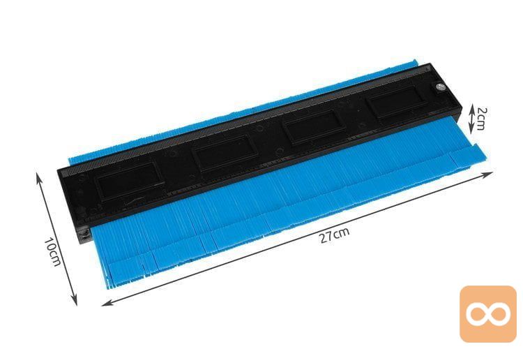 - ENOSTAVEN ZA UPORABO – šablona za obliko je izjemno enostaven pripomoček. Samo pritisnite ga ob površino, da preslikate konturo, nato pa ga nanesite na obdelovanec in začrtajte prej pridobljeno obliko.