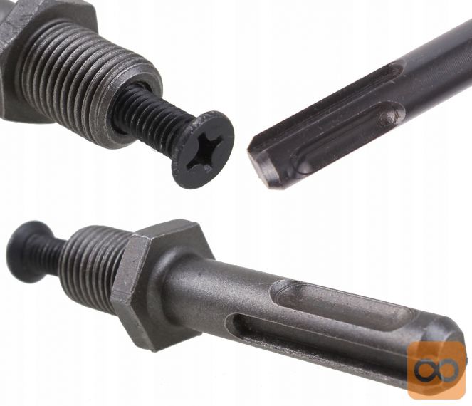 V kompletu je SDS+ adapter za 1/2” glavo, ki omogoča namestitev vpenjalne glave v udarna kladiva z nastavkom SDS+.