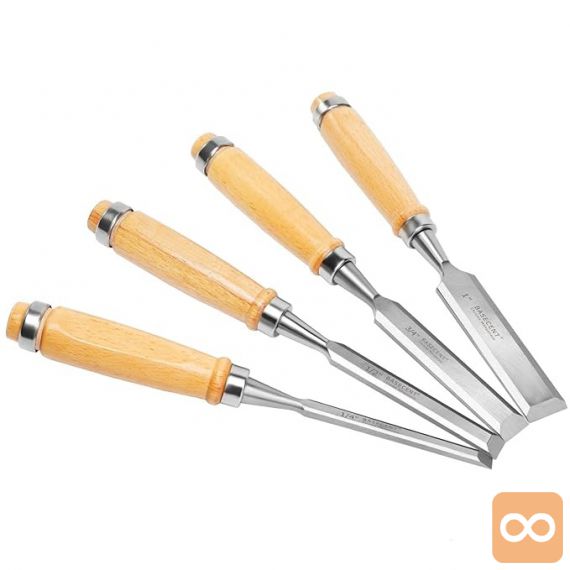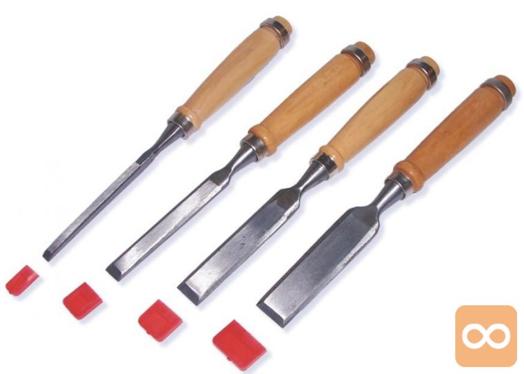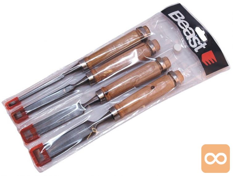 Set je sestavljen iz šterih poševnih dlet in je posebej primeren za natančno obdelavo lesa. Zahvaljujoč lesenim ročajem, dleta udobno ležijo v roki in zagotavljajo stabilnost.
