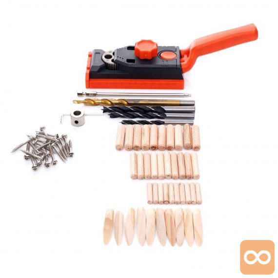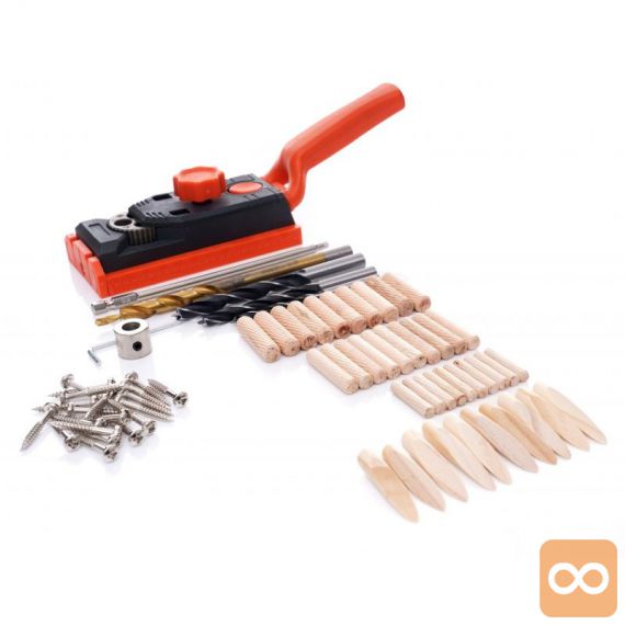 - Za izdelavo lukenj za vogalne spoje tipa “E” in “L” z mozniki 6, 8, 10 ali 12 mm v lesu in iverni plošči debeline od 12 mm do 38 mm.