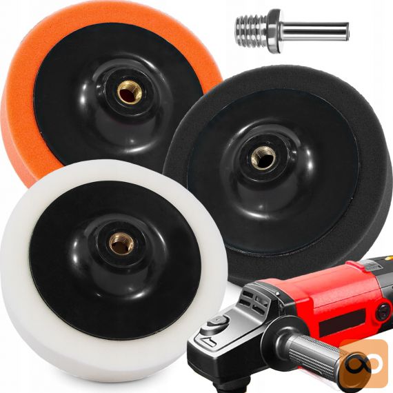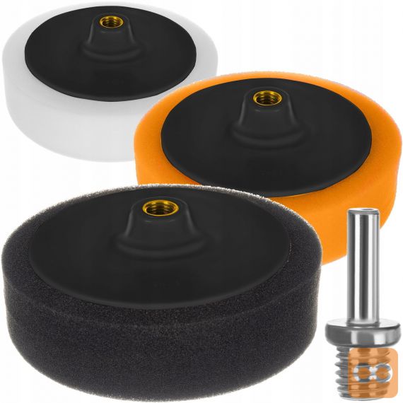 - SPECIFIKACIJA – zatič M14 / 8 mm; največja hitrost vrtenja: 3000 rpm; material: poliuretanska goba / plastika / kovina; 3 vrste: črna – mehka, rumena – srednja, bela – trda; mere: 6,5 / 6,5 / 15cm; teža kompleta: 0,255 kg.