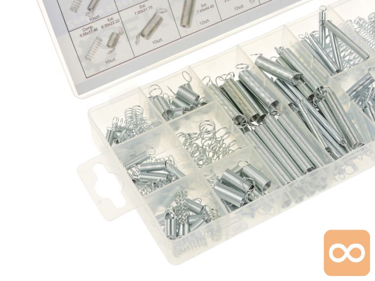 Komplet vlečnih in podaljšalnih vzmeti različnih velikosti.