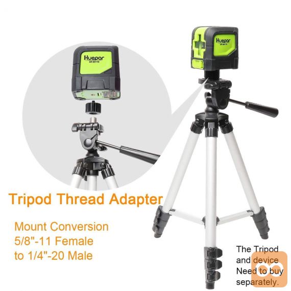 • Adapter za vijake vam omogoča, da laserski nivelir (z notranjim navojem 1/4”-20) povežete s stativom, lasersko montažno palico ali laserskim teleskopskim nosilcem (z moškim navojem 5/8”-11).