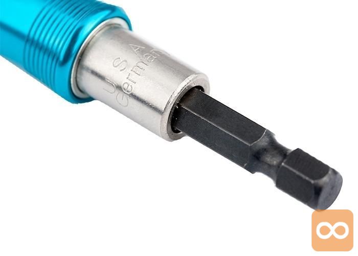 - Adapter je namenjen hitri in varni montaži šesterokotnih nastavkov v izvijač ali izvijač.