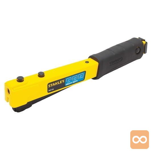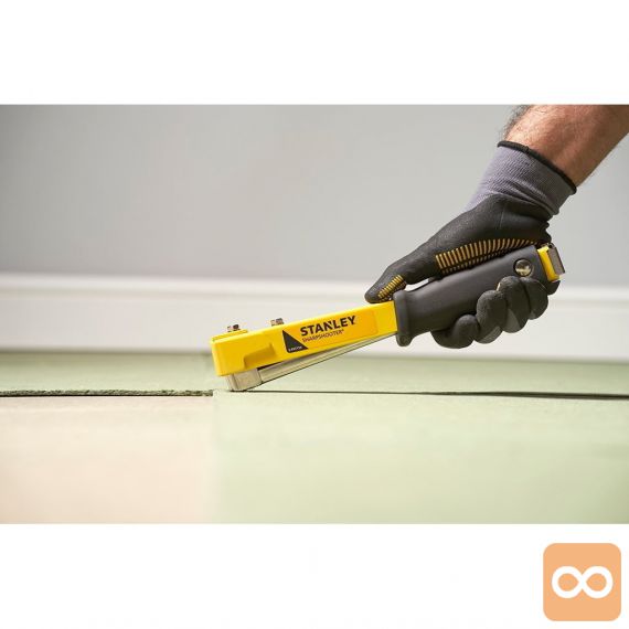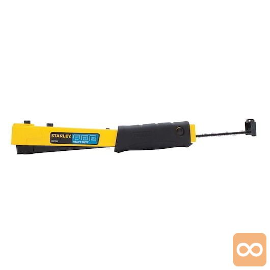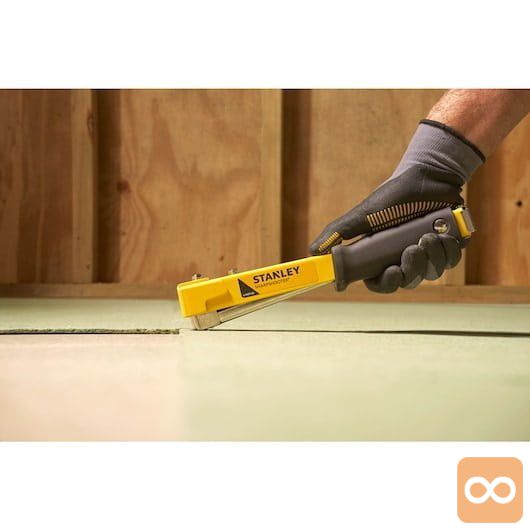- Kompakten, zmogljiv kladivni spenjalnik z jeklenim ohišjem za dodatno vzdržljivost in dolgotrajno uporabnost. Zasnovan tako, da prenese debele, robustne materiale in primeren za uporabo, kot so preproge, izolacija, polstenje in plastična embalaža