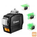 Valovna dolžina laserja doseže 520 nm, medtem ko je delovno območje do 30 m. Zeleni linijski laser 3×360° izstopa z odlično vidljivostjo tudi v sončnih prostorih, zaradi česar je naprava primerna za delo v zaprtih prostorih in na prostem. Ohišje nivelirja je izdelano iz trdnega materiala in je izjemno odporno na poškodbe.