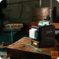 DKLL12PB2-S1 prikazuje 12 vodoravnih in navpičnih črt, s katerimi lahko z visoko natančnostjo obesite sliko, nalepite tapete ali obesite strop. Laser zelene črte 3×360° je izjemno svetel in jasen, zato bo naprava dobro delovala tako pri delu v zaprtih prostorih kot tudi na prostem. Omembe vreden je tudi delovni doseg 30 m.
