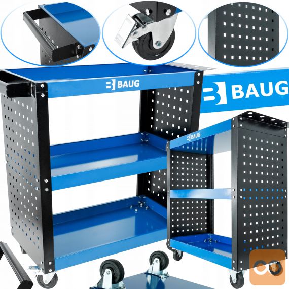 Delavniški servisni voziček za orodje je izjemno uporaben pripomoček za organizacijo in shranjevanje orodja. Voziček je izdelan iz kakovostnih materialov, ki zagotavljajo dolgo življenjsko dobo in zanesljivo uporabo. Voziček ima tri police za shranjevanje orodja in drugih pripomočkov. Voziček ima tudi kolesa, ki omogočajo enostavno premikanje po delavnici.