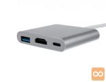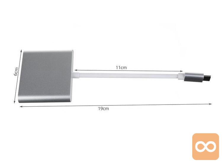 • SPECIFIKACIJA – material: aluminij; najnovejši vmesnik USB 3.1 Type-C; lahko uporabite pozitivni in negativni vtič; PD; visokozmogljiva digitalna obdelava čipov; hkratni prenos podatkov in nalaganje strojne opreme; vhod: USB 3.1 tip C (način DP); izhod: USB 3.1 / HDMI / USB 3.0 + USB 2.0; zagotavlja AVDIO in VIDEO signal; mere: 5/6/1 cm; dolžina kabla: 11 cm; teža: 0,052 kg.