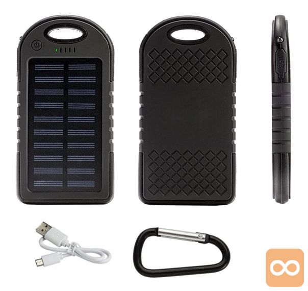 Solarni 2x USB powerbank 5000mAh 1x microUSB + LED svetilka
