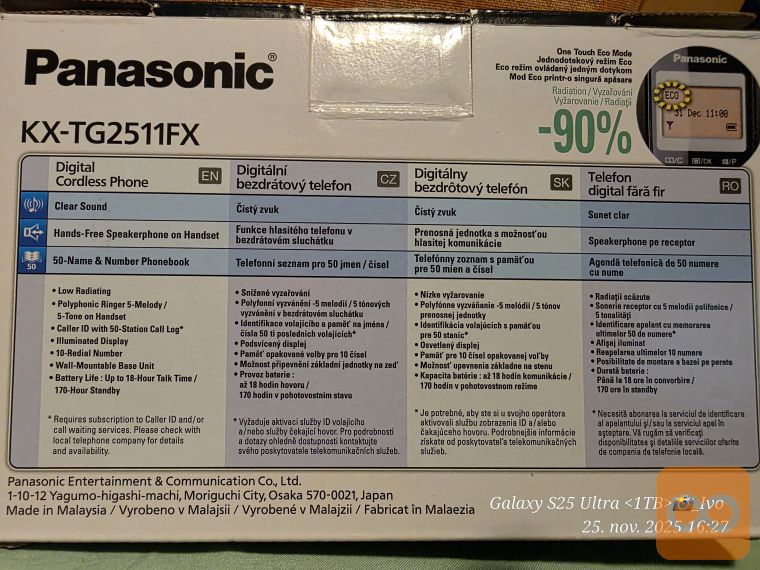 Prodam hišni telefon Panasonic,priključen je bil,UPORABLJEN PA NITI ENE MINUTE,ker ga nisem in ga ne potrebujem*.Zaradi NEUPORABE GA TUDI PRODAM**.Je v garanciji,kupljen 21.7.2025_Vse inf.so na fotografijah<pogledaj in beri>!